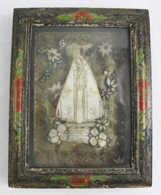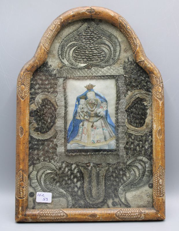 mit reicher Stickerei, mittig bemalte Darstellung von Maria Dorfen, ca. 25 x 18 cm