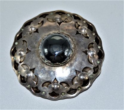 Silberbrosche Art Deco Hämatit Albert Kahlbrandt Ziseleur Hamburg 800 Silber, Handarbeit, Ø ca. 5,1 cm