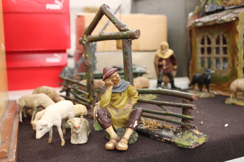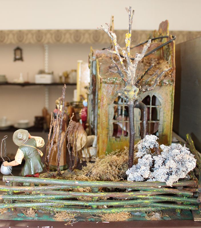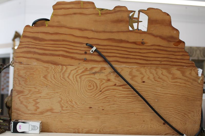 verschieden große Figuren aus Pappmache/Masse (Beschädigungen vereinzelt möglich), Elektrik ungetestet (vom Fachmann prüfen lassen)