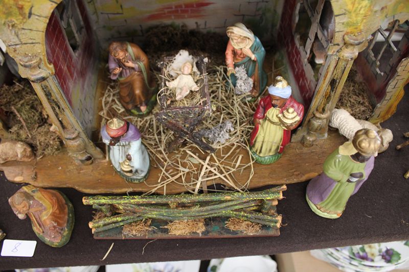 0421-Krippe Weihnachtskrippe mit ca. 40 Figuren Mitte 20 Jh.