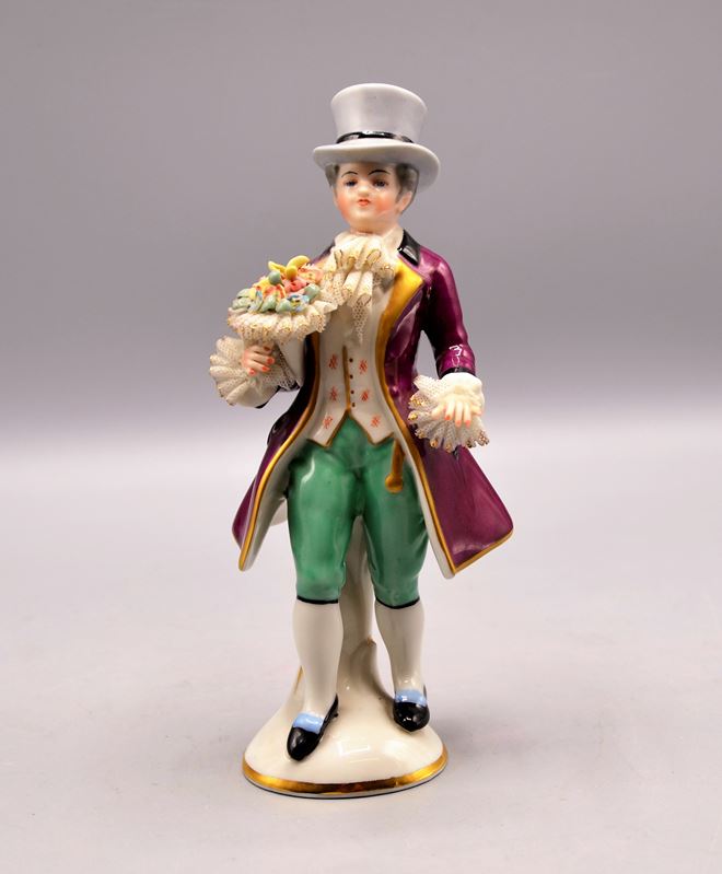 0422-Porzellanfigur Kavalier Friedrich Wilhelm Wessel Frankenthal Mitte 20 Jhdt.