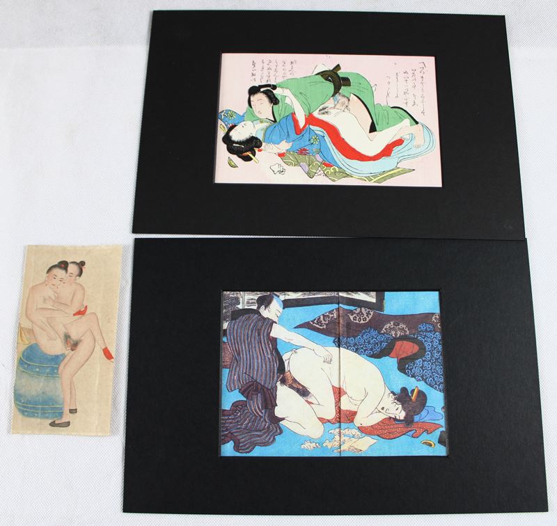 Shunga Bilder erotische Darstellungen Japan Konvolut 5 St., tlw. handkoloriert