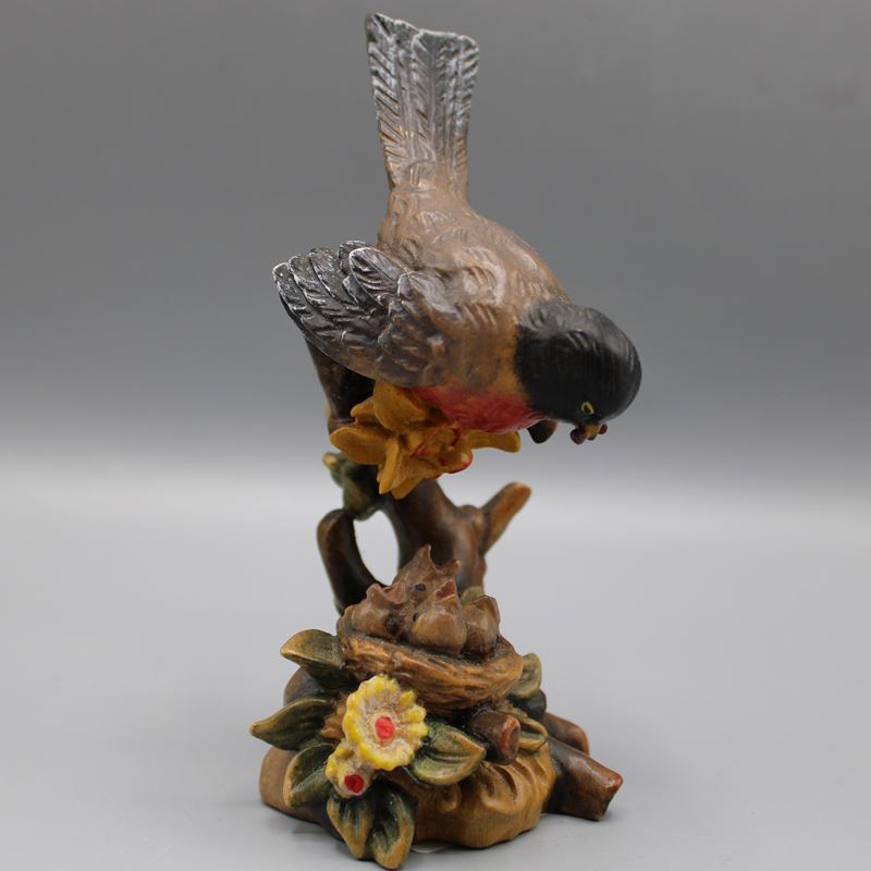 Vogel beim Füttern der Jungen Schnitzfigur ca. 14,5 cm