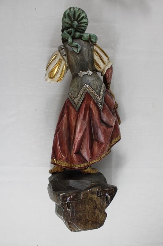 Wandfigur Schnitzfigur Mädchen mit Blumenstrauß