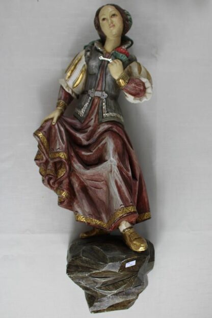 0425-Wandfigur Schnitzfigur Mädchen mit Blumenstrauß