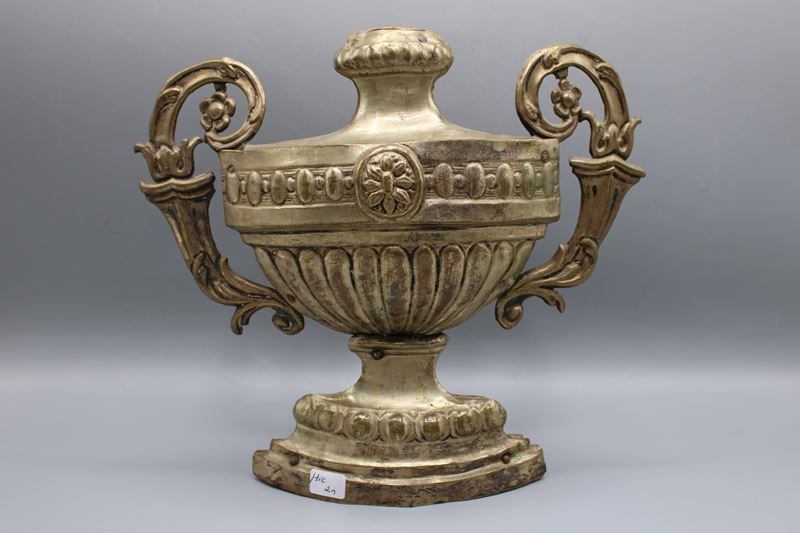 Messingblech versilbert auf Holzkern, ca. 22 x 24 cm
