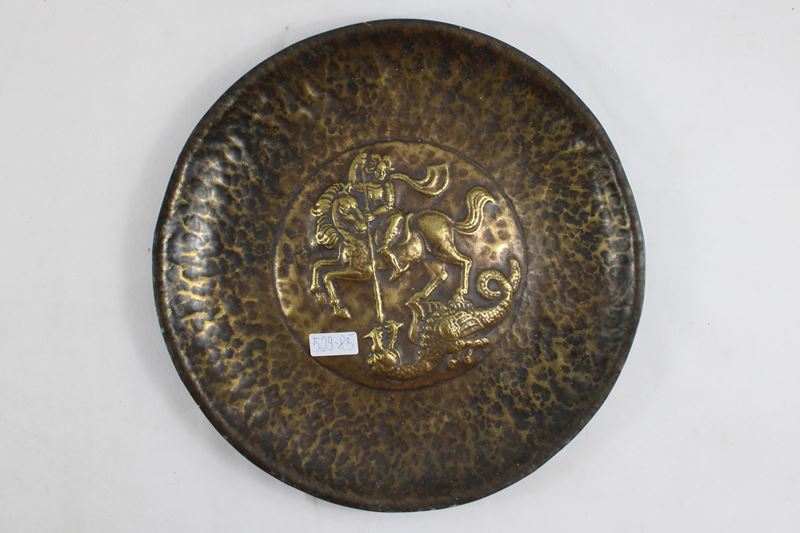 0429-Hl. Georg Drachentöter handgefertigter Messing Wandteller Ø 35 cm