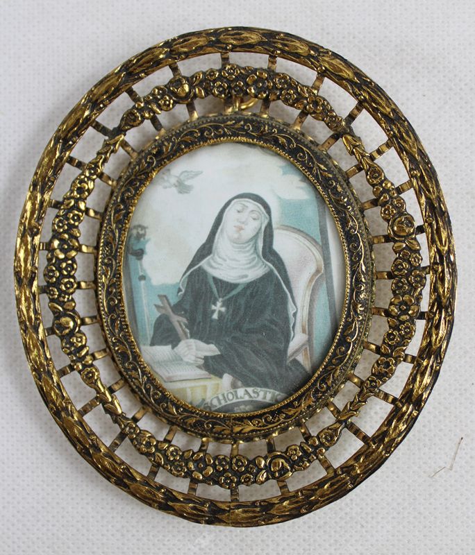 0430-Prunkrähmchen mit Darstellung der hl. Scholastika 20 Jh.