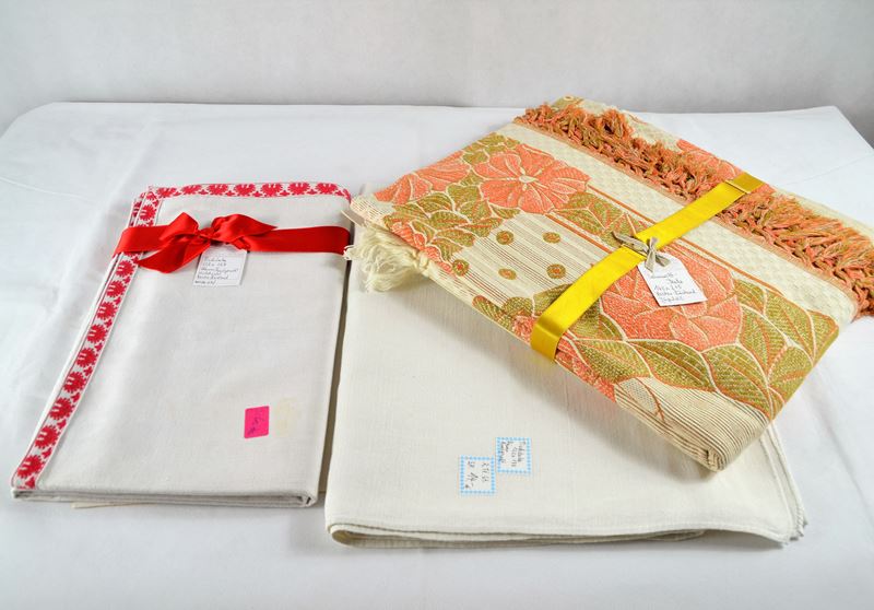 Tischdecken Tischtücher einfach bunt Leinen Baumwolle etc. Konvolut 6 St., tlw. Stickereien, tlw. Leinen handgewebt, sauber u. gepflegt (vereinzelt Flecken möglich)