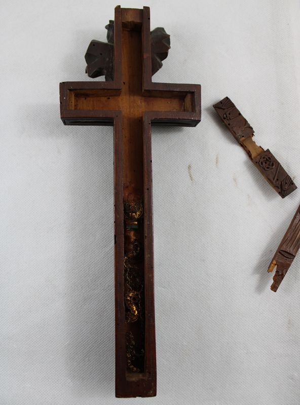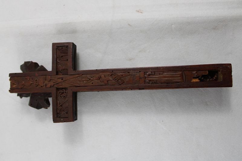 0435-Reliquienkreuz Holz geschnitzt Oberammergau 19 Jh.