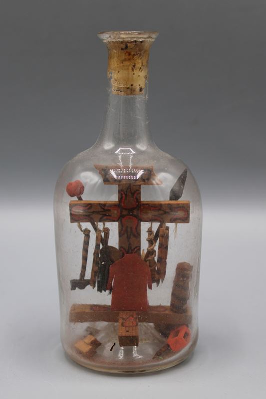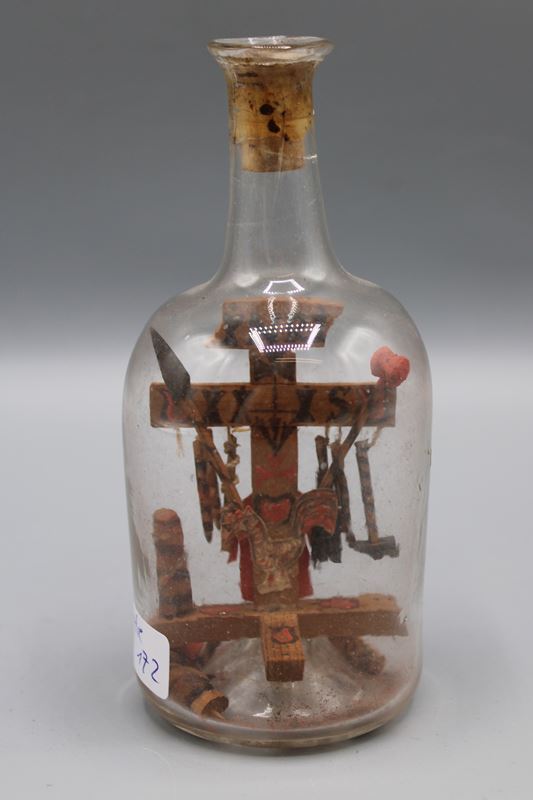 mit Arma Christi, Flasche mit Abriss, ca. 12 cm, Beschädigungen