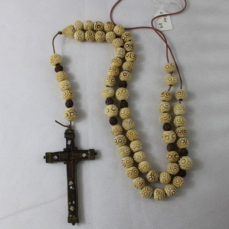 0439-Rosenkranz Kreuz mit Perlmuttintarsien 18/19 Jh.