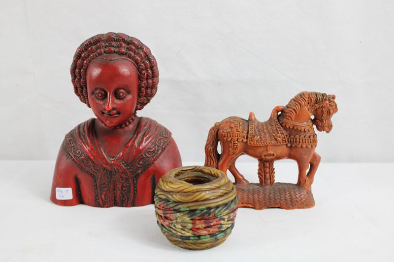 tlw. mit alten Klebezetteln, Wachspferd beschädigt