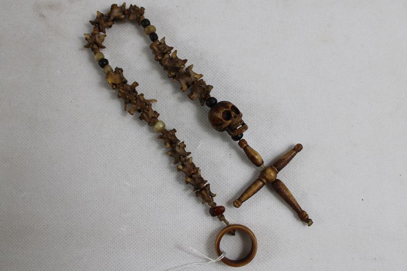 0448-Wirbelrosenkranz mit geschnitzten Totenkopf alpenländisch 17/18 Jh. (selten)
