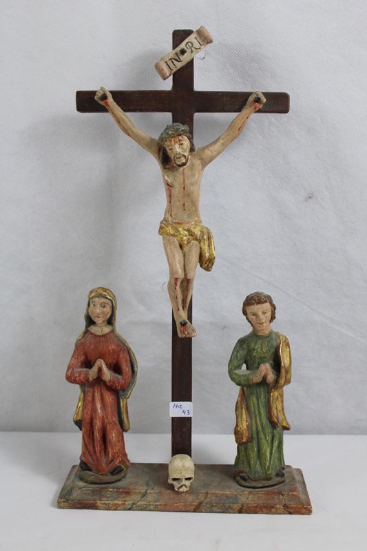 Holz geschnitzt, Jesus mit Maria u. Johannes, ca. 35 cm