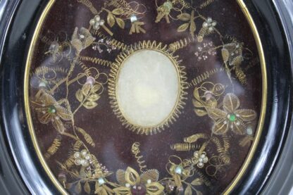 mit feinen Drahtarbeiten, Glasfarbsteine u. Perlen, ca. 28 x 24 cm, Rahmen unten leicht beschädigt