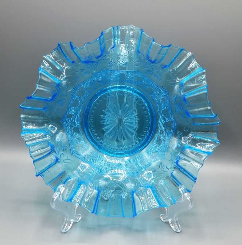0463-Paar Pressglaschalen blau um 1900 Ø 20 cm