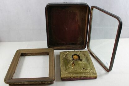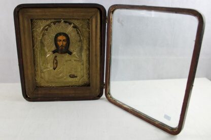 Oklad Ikone Jesus in verglastem Rahmenkasten 19 Jh.