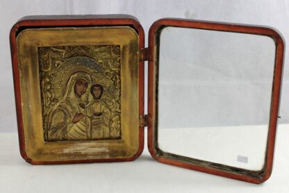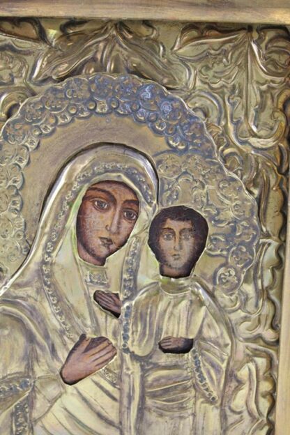 Oklad Ikone Muttergottes mit Kind in verglasten Rahmenkasten 19 Jh.