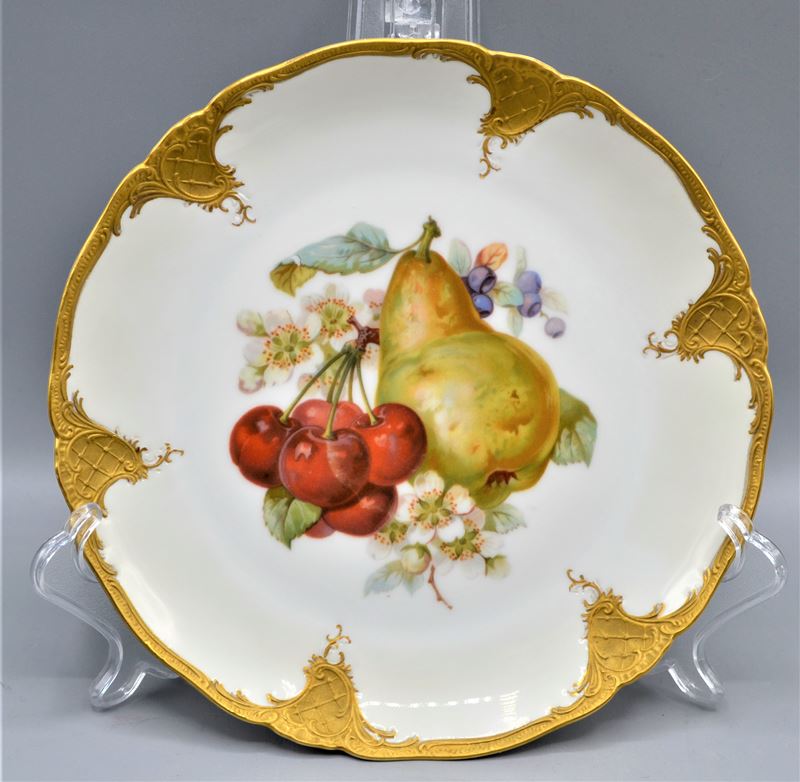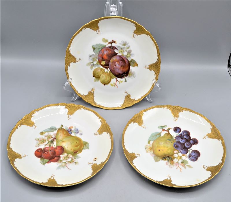 Fürstenberg Porzellan Obstteller Prunkteller mit Goldrand 3 Stück, handbemalt, Ø 21 cm