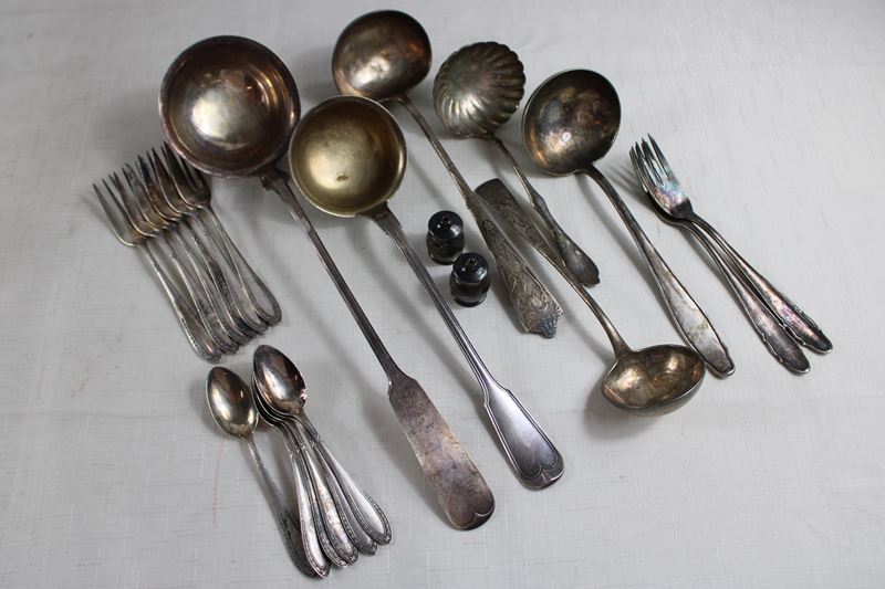 0498-Altes versilbertes Besteck Konvolut ca. 1 kg