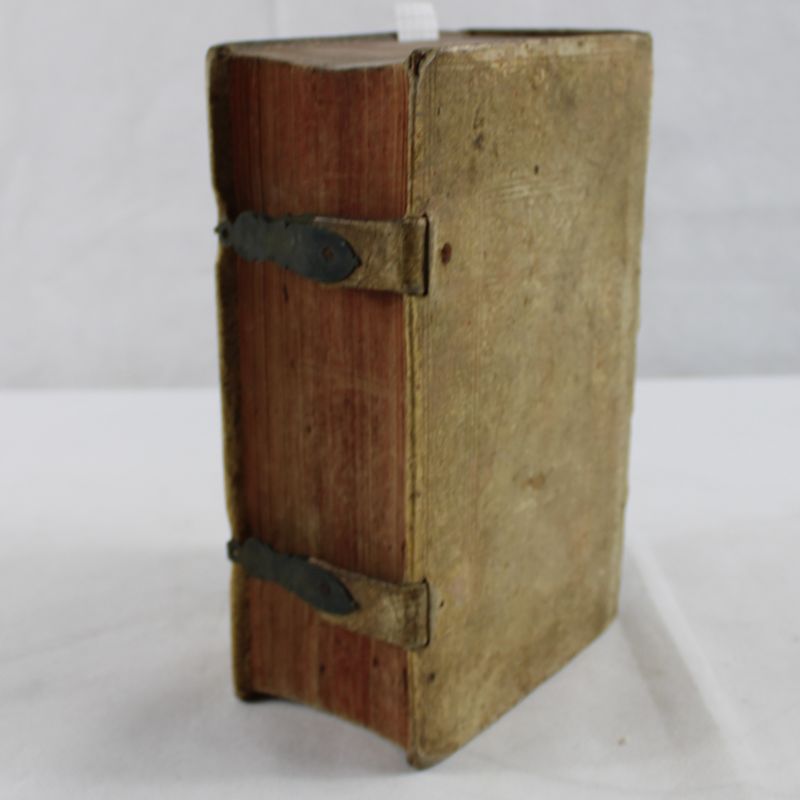 geprägter Schweinsledereinband, 2 Schließen, Altersspuren