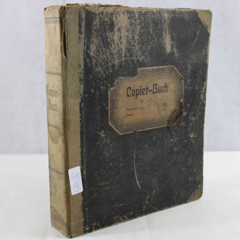 angefangen 1914 bis in die 20er Jahre, mit einer Kopierpresse angefertigte Vervielfältigungen von Geschäftsbriefen in einem Buch, frühe Form des Kopierens, selten zu finden, Altersspuren/kl. Beschädigungen