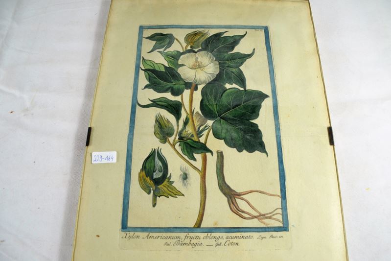 Kupferstiche kol. Pflanzen Insekten J. X. Schmuzer u. Giorgio Bonelli aus Hortus Romanus "Xylon Americanum"