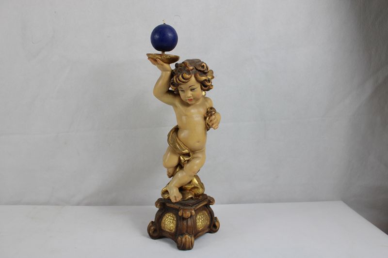 0503-Putto Kerzenständer Schnitzfigur ca. 32 cm