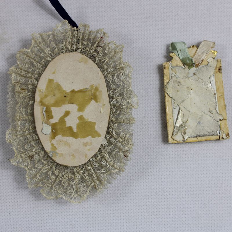 diese Medaillons verzierten wohl Konfekt dass zu feierlichen Anlässen in Adelsgesellschaften überreicht wurde, ca. 6,6 x 4 cm und 12 x 8,5 cm, kleine Beschädigungen