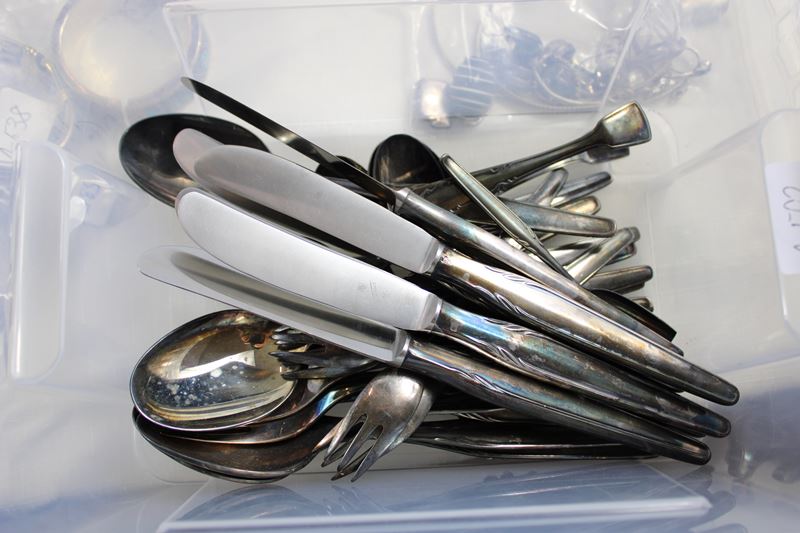 90er Versilberung, Gabeln Löffel etc. 1114 g, Messer 442 g