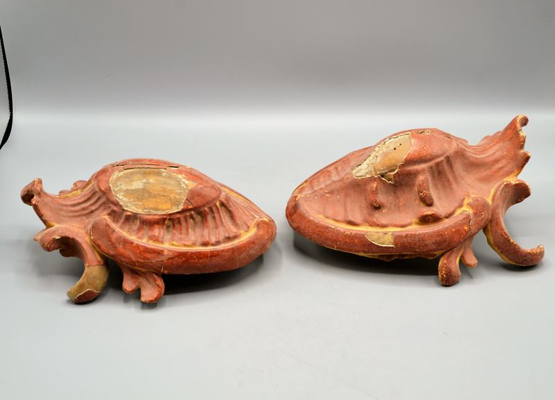 Paar Eckappliken Rocaillen Rokoko um 1760 geschnitzt ca. 22 cm