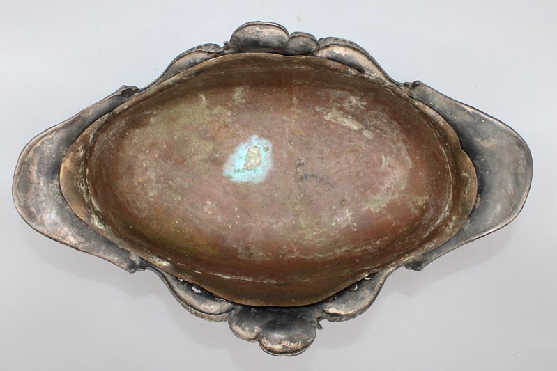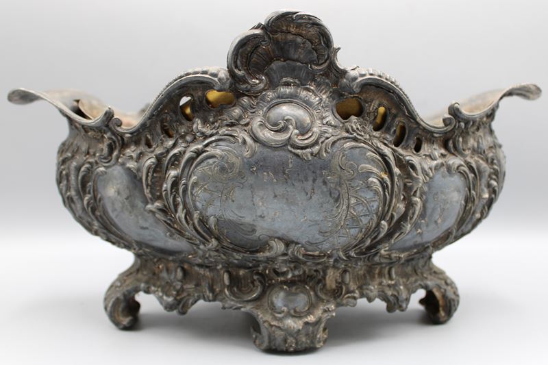 Britannia Metall antik versilbert, mit Messing Einsatz, ca. 34 cm,