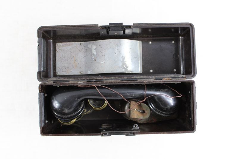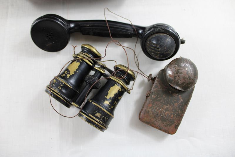 darunter Bakelit Gehäuse Feldtelefon Wehrmacht, Taschenlampe, Fernglas, Beschädigungen vorhanden