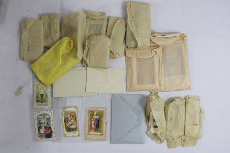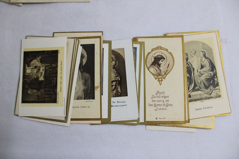 0528-Blechdose voll alter Andachtsbilder um 1900 / frühes 20 Jh.