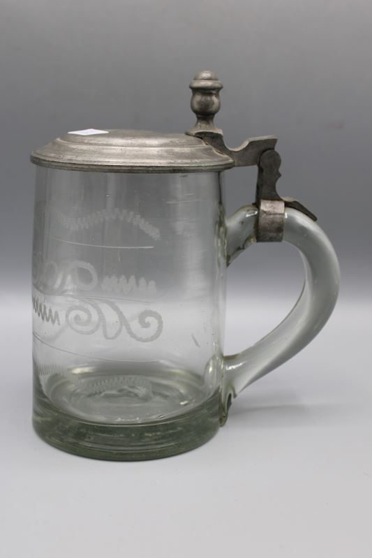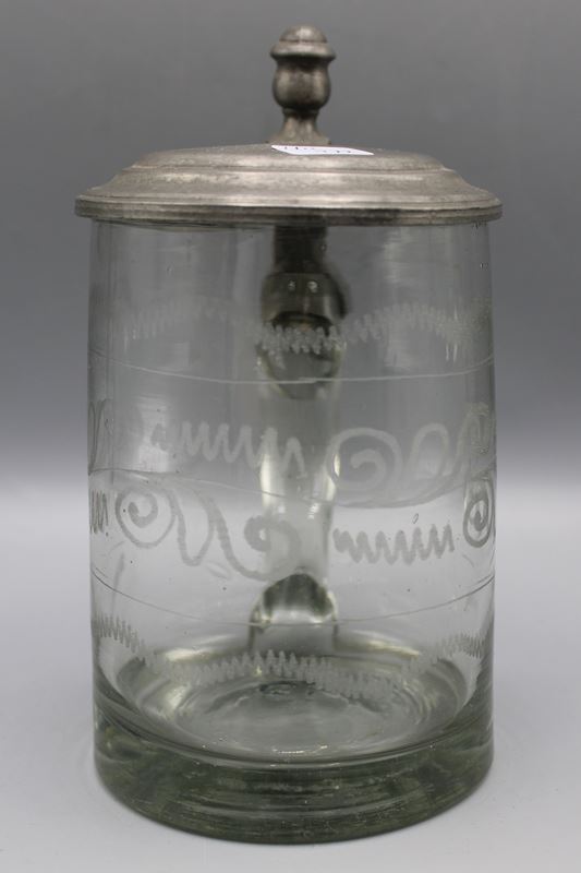 Glaswalzenkrug 0,5 L mit Zinndeckel 19 Jh.