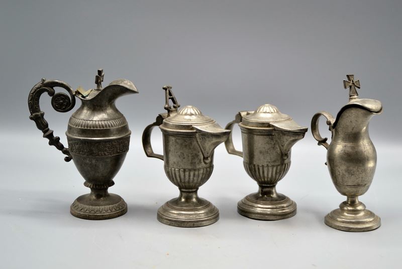 0530-Sammlung 7 Zinn Messkännchen überwiegend 19 Jhdt.