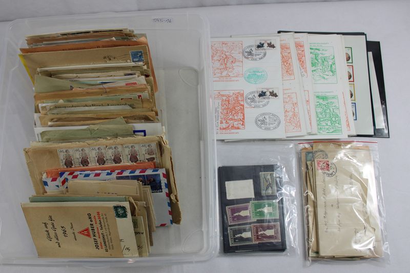 einmalige Sammlung überwiegend mit Bezug zu der Stadt Landshut, diese dürfte sowohl für geschichtlich interessierte regionale Sammler als auch für Philatelisten interessant sein, private geschäftliche und behördliche Korrespondenz (tlw. Briefumschläge ohne Inhalt), viele Stücke aus der Zeit des Königreiches Bayern und des Dritten Reiches, vereinzelt Feldpost, auch Korrespondenz mit anderen Ländern, einige Stücke mit Bezug zur SPD z.B. Briefmarken "Der Hammer", alte Briefmarken Stadt Landshut, 6 x Landshuter Hochzeit 1981 große Stempelkollektion 8 Doppelkarten (5 noch eingeschweißt), weitere Stempelkarten und Briefmarken etc., Beschädigungen tlw. möglich