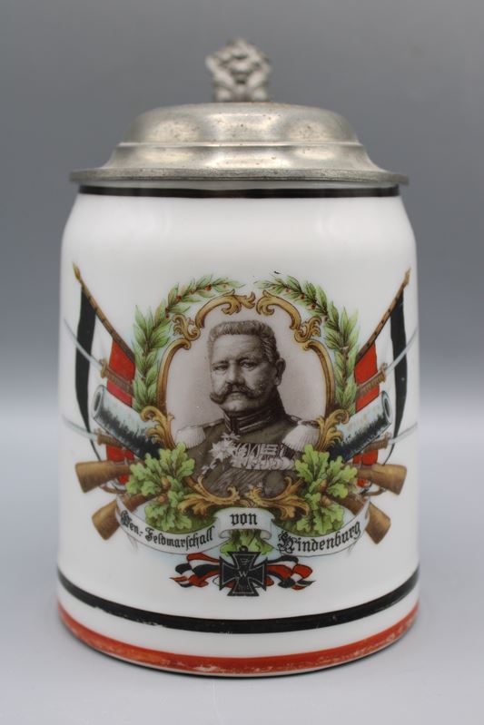 0532-Hindenburg Porzellan Bierkrug 1/2 L Patriotika WK I.