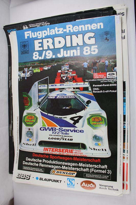 Veranstalter Motor Sport Club Erding, 11 x 1983, 19 x 1984, 7 x 1985, die meisten Plakate in gutem Zustand, vereinzelt Beschädigungen/Flecken, Plakatlänge ca. 81-84 cm