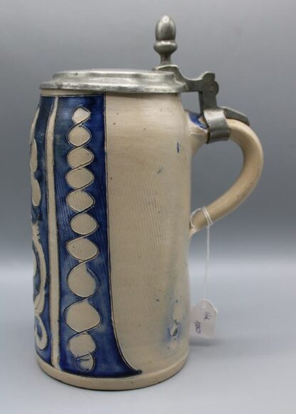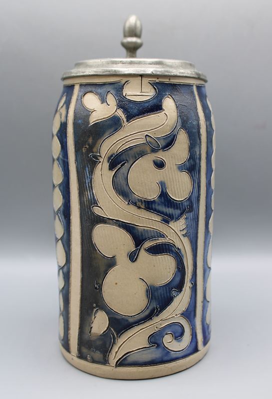 0539-Maßkrug blau glasiert Ritzdekor um 1900