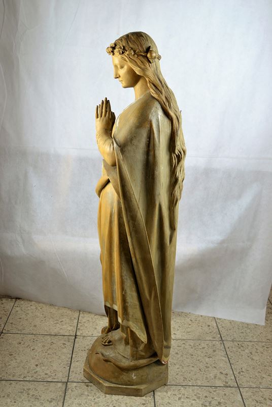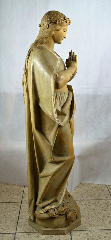 Maria Immaculata Schnitzfigur 19 Jhdt., ohne Fassung, hervorragend u. fein ausgeführte Bildhauerarbeit, rücks. kleines Loch, ca. 114 cm