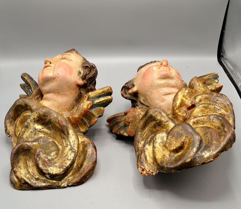 Paar Putto Köpfe Wandengel Barock um 1760 ca. 30 cm