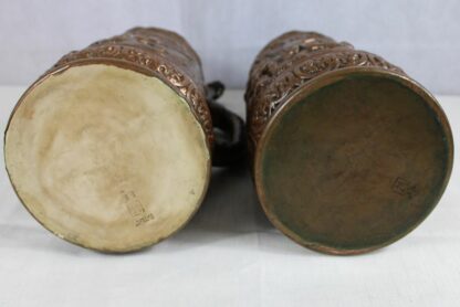 Paar 3 L Steinzeug Krüge kupferummantelt 19 Jh.