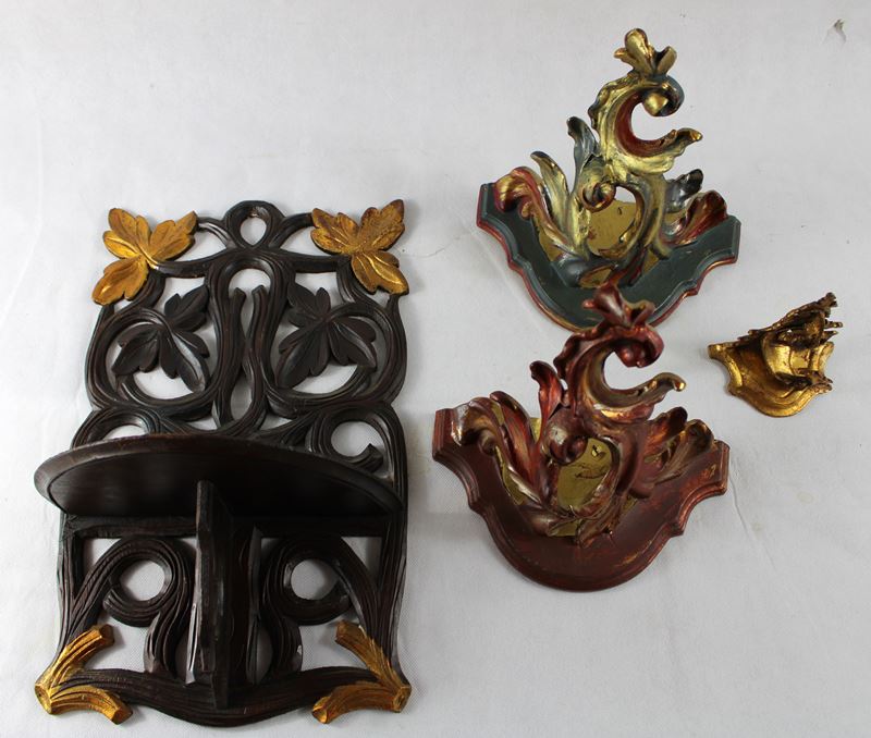 0549-Wandkonsolen Wandhalterungen f. Schnitzfiguren etc. Konvolut 4 St.