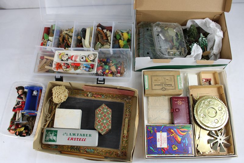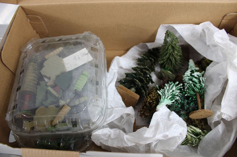 0550-Puppenstube Bauernhof Schule Bäume Diverses Konvolut