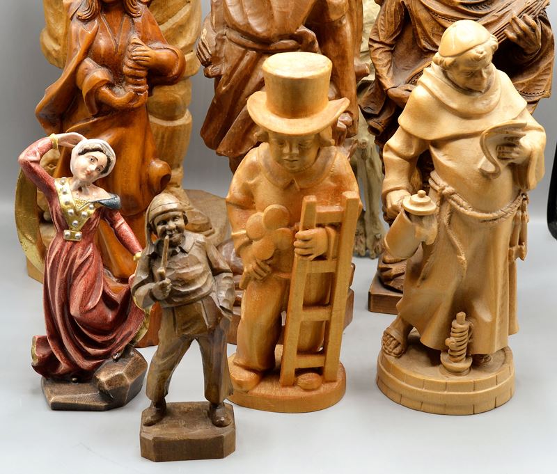 Schnitzfiguren Holzfiguren 20 Jhdt. 9 St.