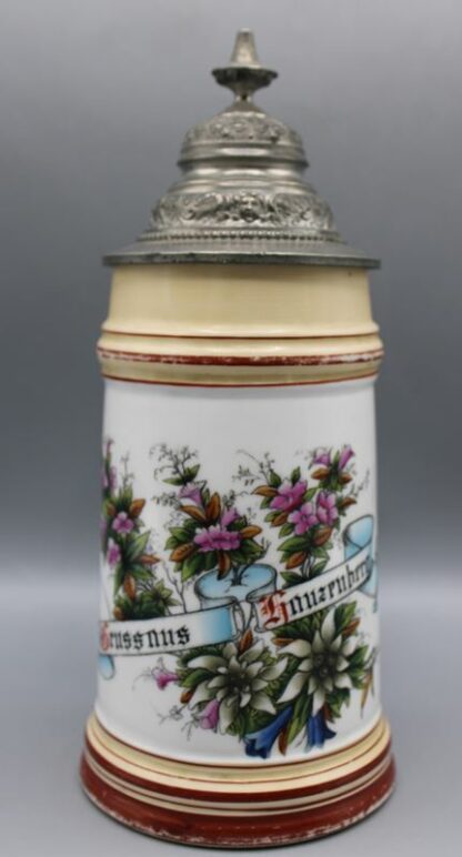 0553-Porzellankrug 1/2 L “Gruß aus Hauzenberg” um 1900