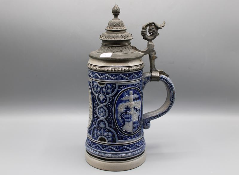 0554-Reinhold Merkelbach Steinzeug Reliefkrug 1 L um 1900