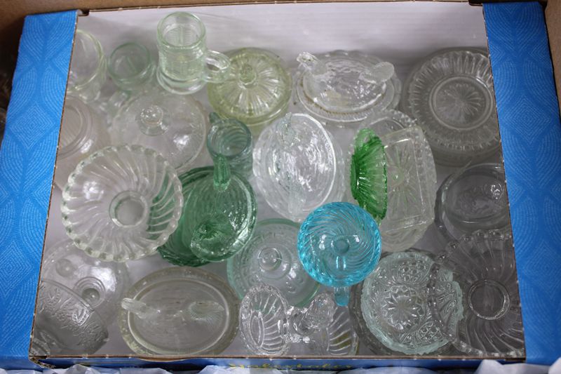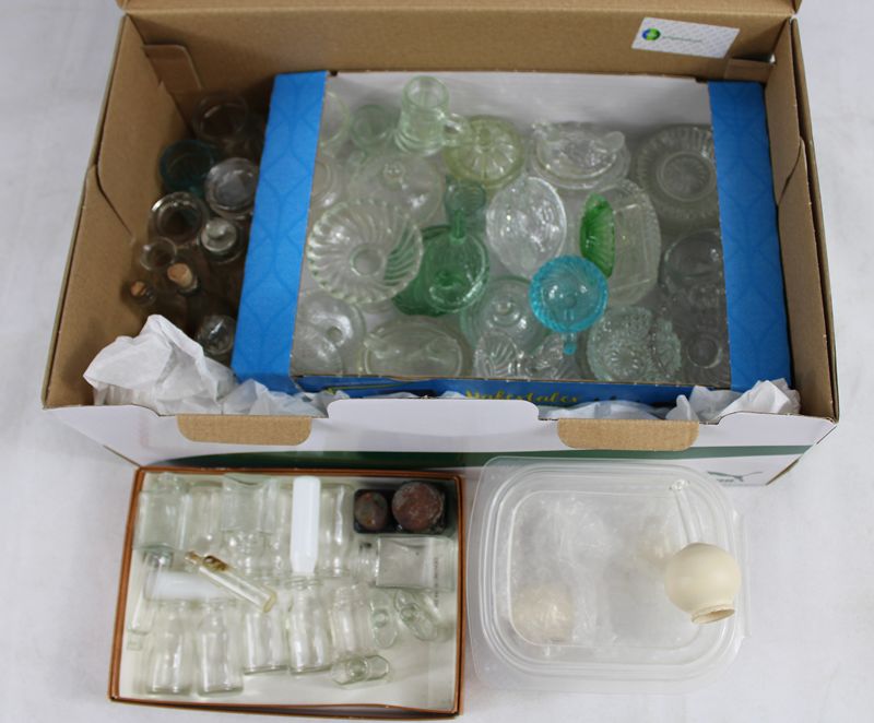 0555-Puppenstube Kaufladen Gläser Pressglas Konvolut